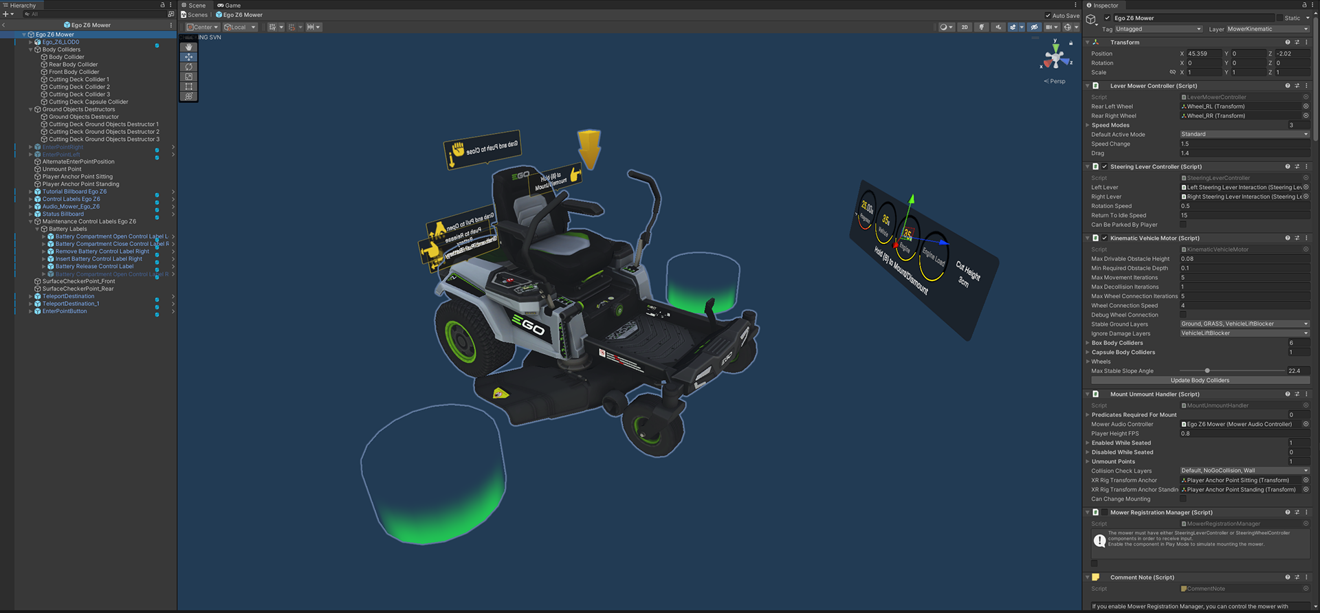 Building on the concept of the original game but taken in a new direction, LMSVR was built from the ground up with new systems in place and a more relaxed tone from it's predecessor. The gameplay saw a much more in depth and "hands on" approach to what the player would usually do in the original game. This time, micro-interactions such as pressing buttons and pulling levers on the mowers, were developed to be more interactive and less automated, as well as maintaining the lawn equipment.